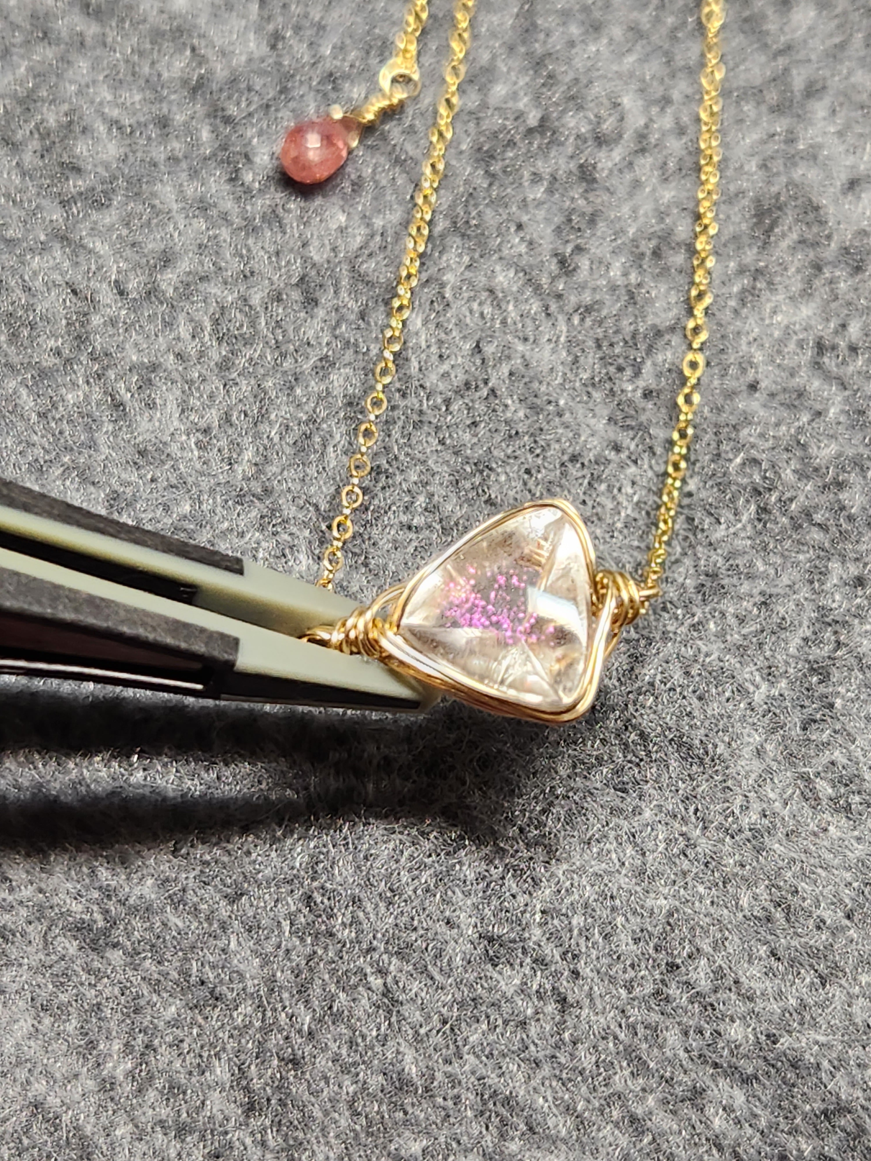 ワイヤーラップジュエリーは柔らかいワイヤーを使用していますので、無理な力を加えたり、引っかけたりすると変形や破損の原因になりますのでご注意ください。ご使用後は柔らかい布等でお拭きください。